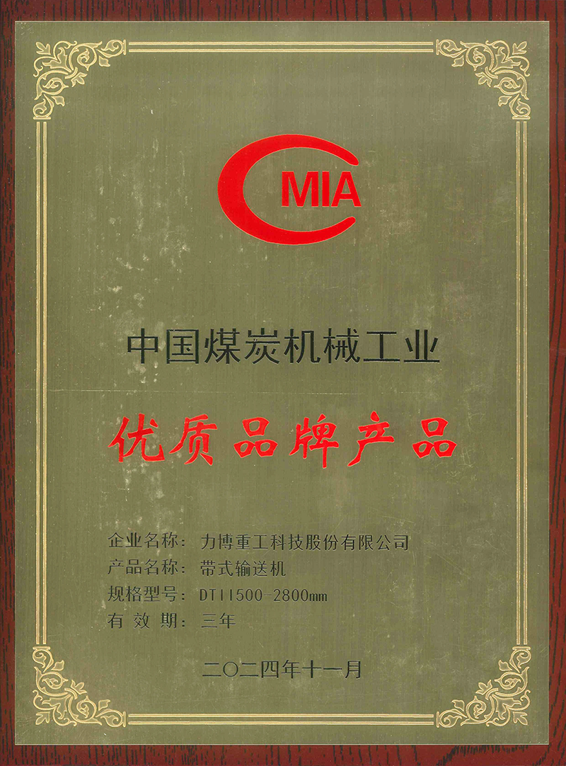 近日,力博重工申报的“DTⅡ500-2800mm”带式输送机产品成功通过了“中国煤炭机械工业优质品牌产品”的复核认定。