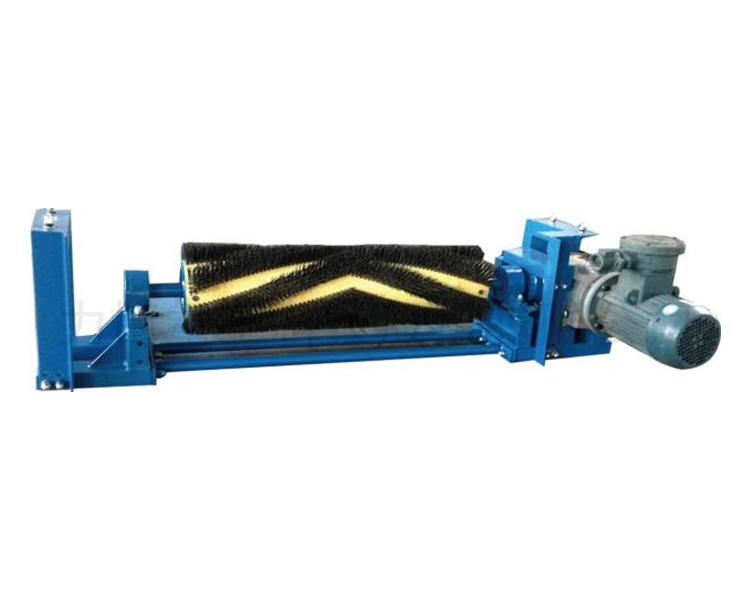 刷丝吸水量低,具有良好的自我清洁功能,用于略带粘性的粉状物料的清扫。对花纹带或磨损后凹凸不平胶带以及机械接头胶带清扫效果明显。阻燃抗静电耐磨尼龙刷丝能克服普通刷丝耐热、耐磨性差/容易产生静电结块而失效等缺点。驱动单元采用特殊连接方式,安装空间小,传动效率高,可持续清扫,安装维护方便。通过在安装支架设置调节孔,根据刷丝磨损程度调节清扫器与输送带面的距离,可始终保持最佳清扫效果。