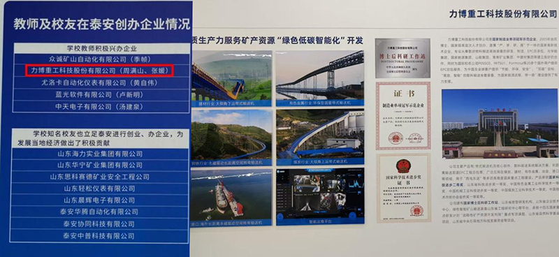 在山东科技大学办学历程和科技成果展厅(泰安)中,力博重工与中天科技等一批优秀校友企业被列为重点展示的企业。通过文字介绍和图片展示,力博重工的发展历程成为了学校办学成就和校友风采的生动注脚,彰显了企业在行业内的领军地位。